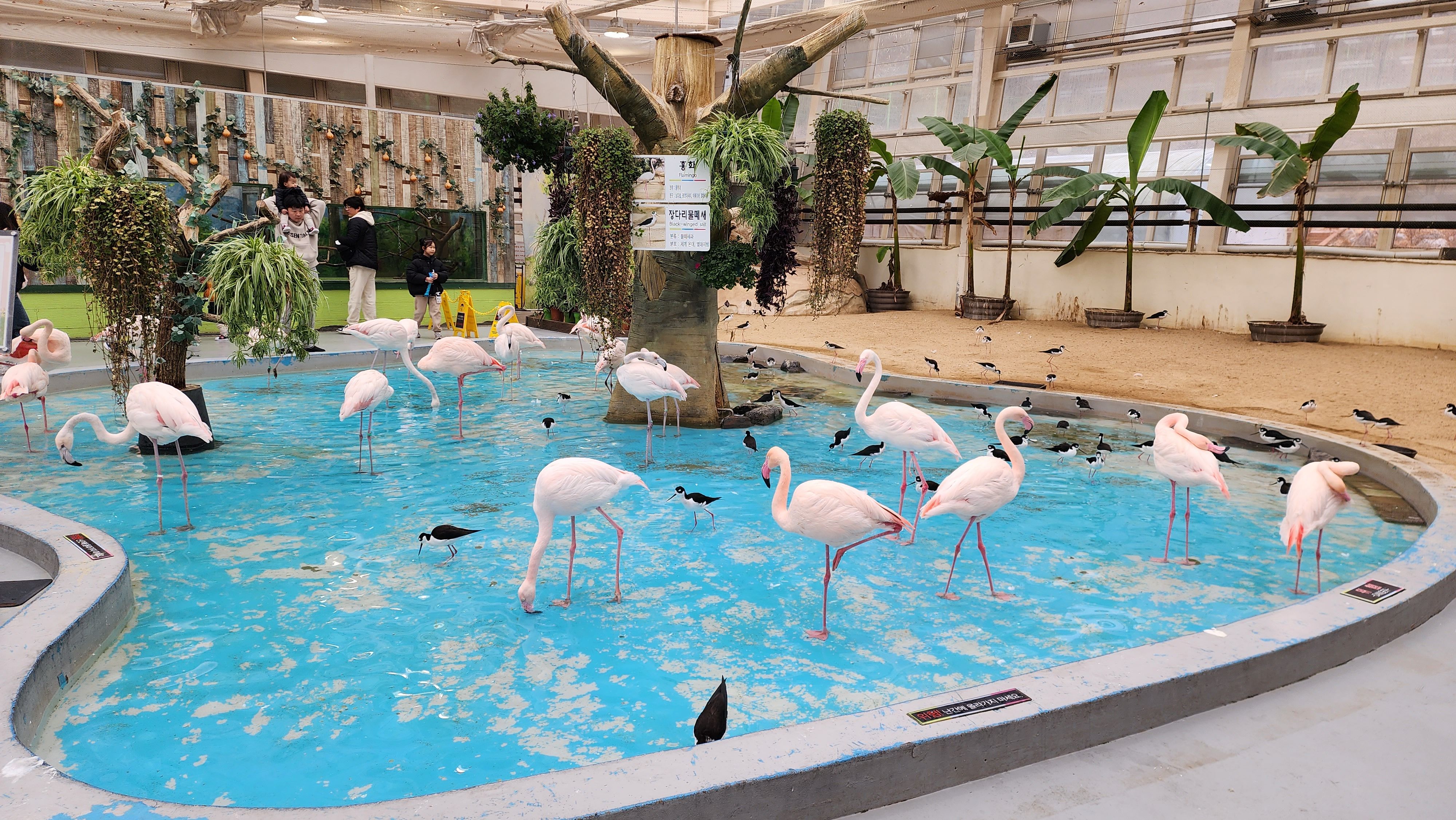 버드랜드 실내로 들어가니 홍학, 토코 왕부리새, 물새류들을 아주 가까이에서 체험하고 관찰할 수 있는 공간이 나옵니다.