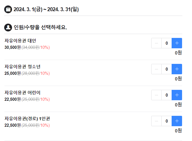 | 대전시민 | 대전시민(대전사랑카드/온통대전) | 입장일 현재 대전 거주자에 한함 |